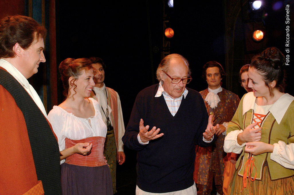 MELISSO - Spoleto Ugo GREGORETTI con i cantanti durante la prova - DSCF1402 stessa foto in B&N |